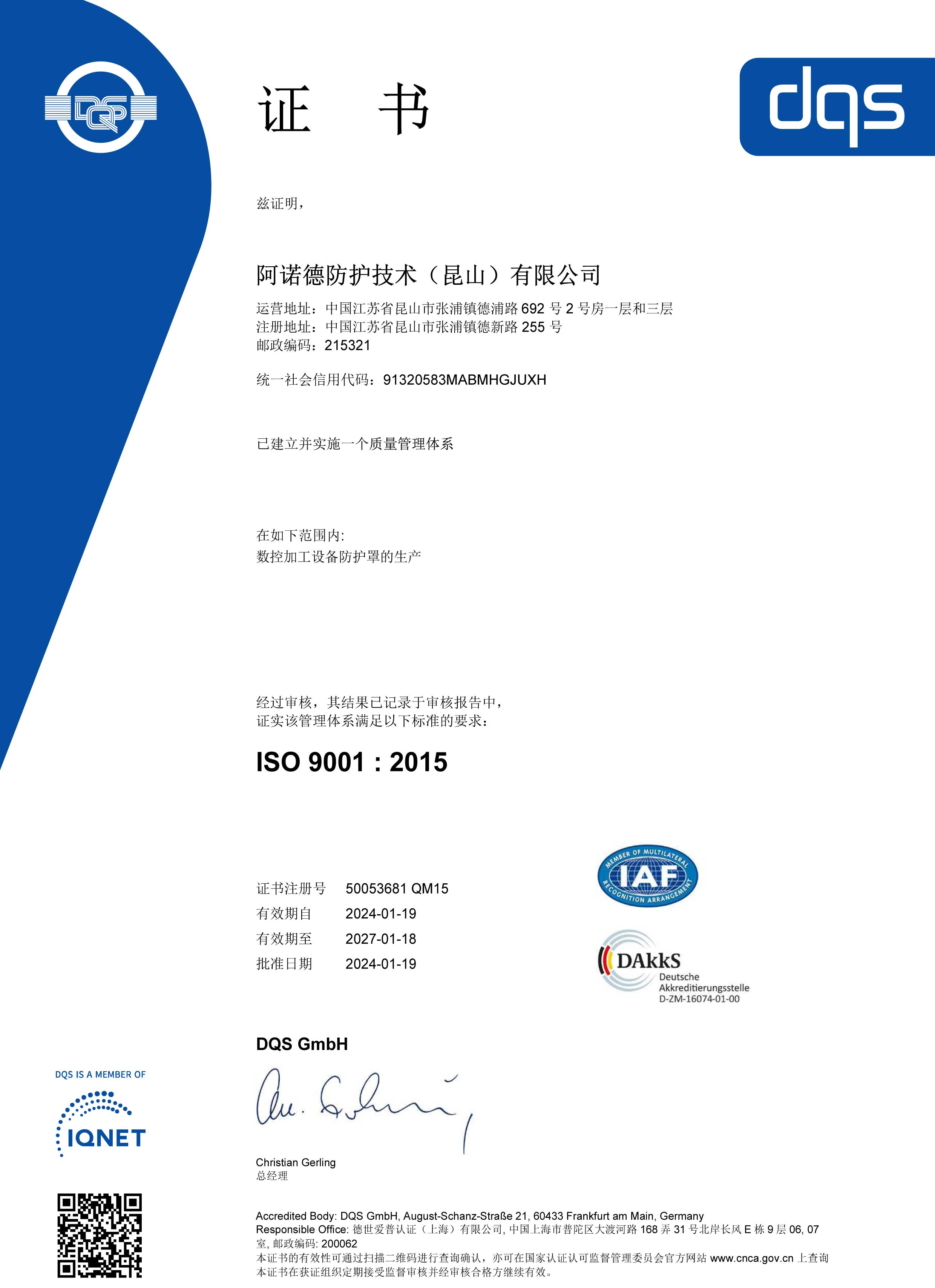 Certificate DIN9001 2020